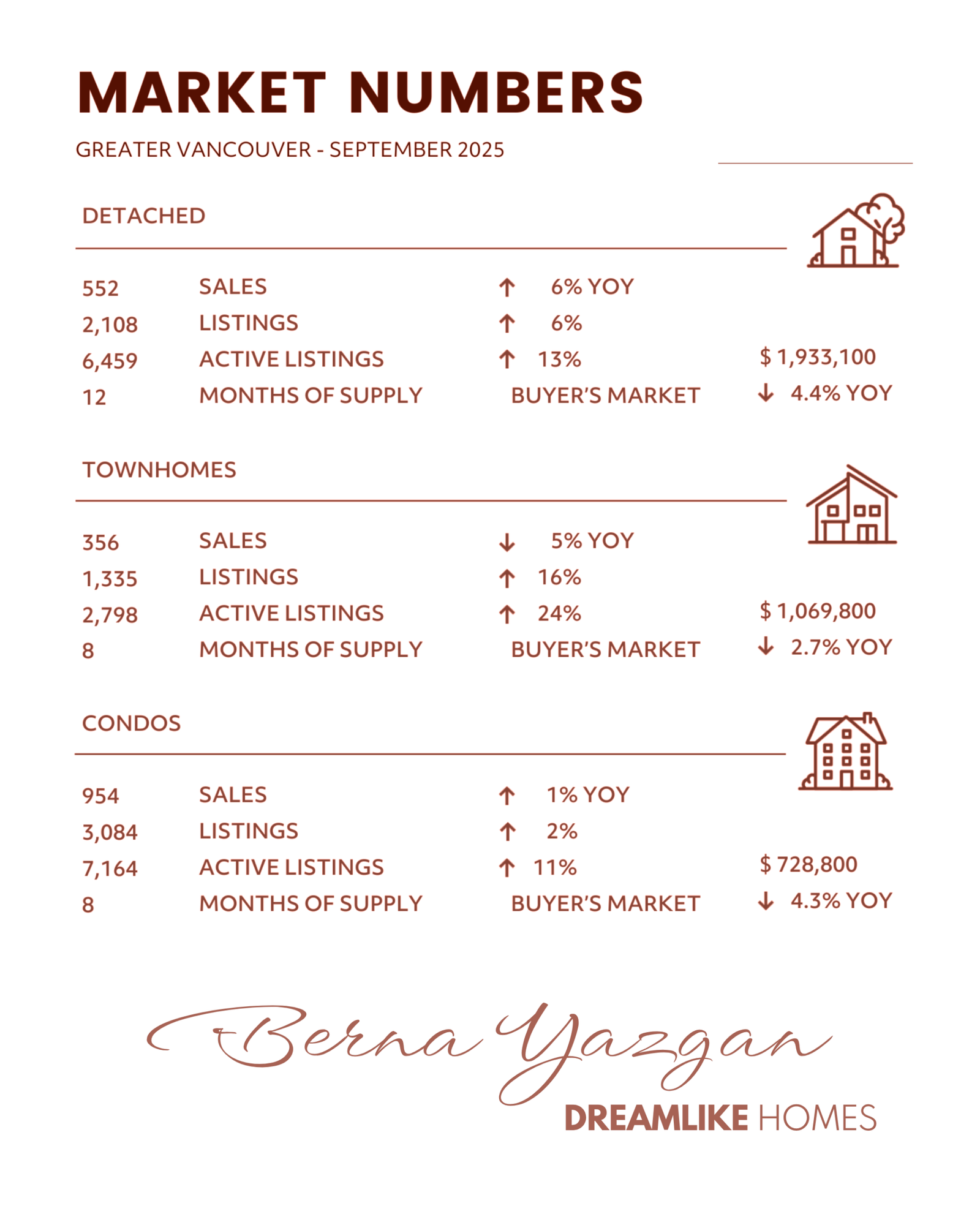 September closed the books on a transitional quarter in Metro Vancouver real estate, a month where the market showed resilience amid shifting conditions. While overall sales softened compared to the swifter pace of the spring and early summer, inventory expanded again, giving buyers continued choice. For sellers, the takeaway isn’t necessarily negative either—while pricing has edged lower, the depth of demand in certain submarkets and the surge of new listings suggest that activity is far from stalling out. Instead, we’re watching a marketplace realign itself after an extended stretch of volatility.
